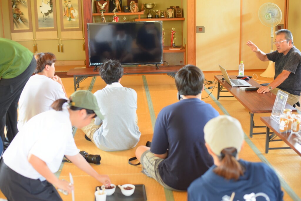 2日目は、学生たちが3チームに分かれて町の一次産業をめぐるフィールドワークを実施。