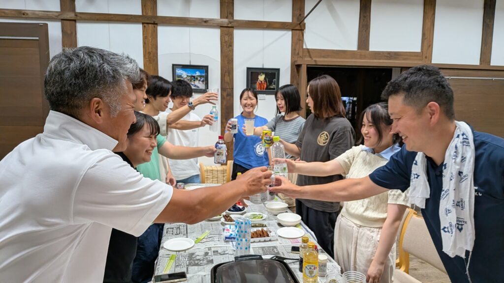 夜には地域の方を招いた餃子パーティーで交流。笑い声の絶えない温かな時間となりました。
