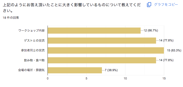 その要因として一番多かった意見は、「参加者同士の交流」でした。