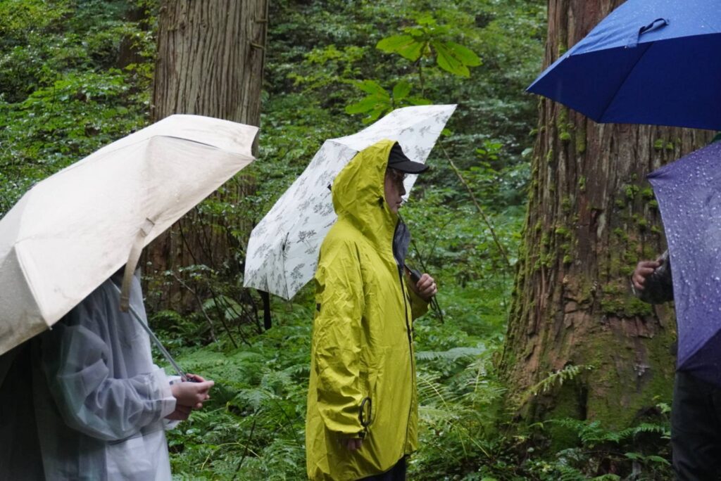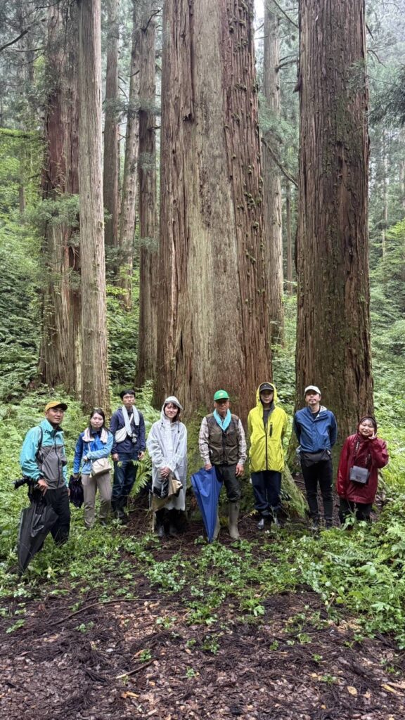 午後は、地元の林業事業社「三英クラフト」の星川社長のアテンドで大美輪の大杉を見学。樹齢300年を超える巨木の迫力に、参加者たちは圧倒されました。
