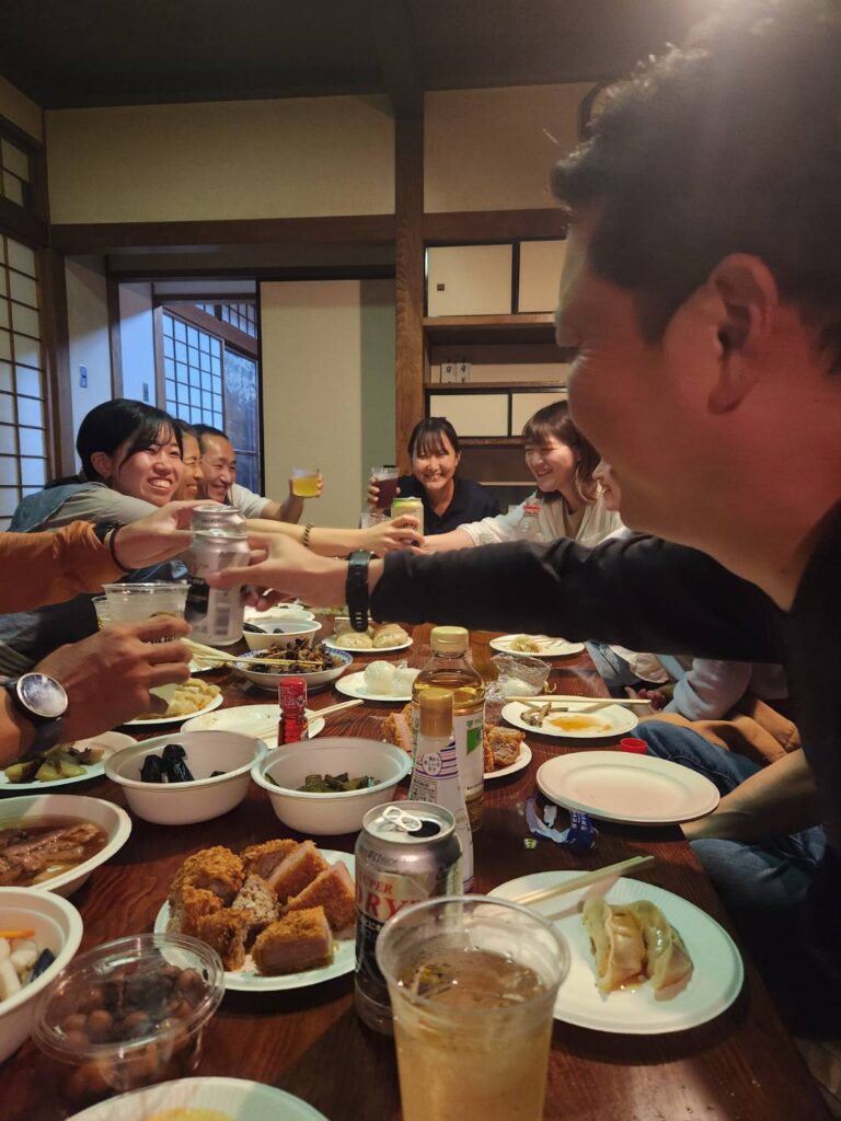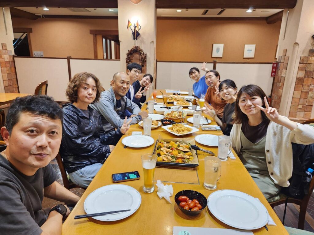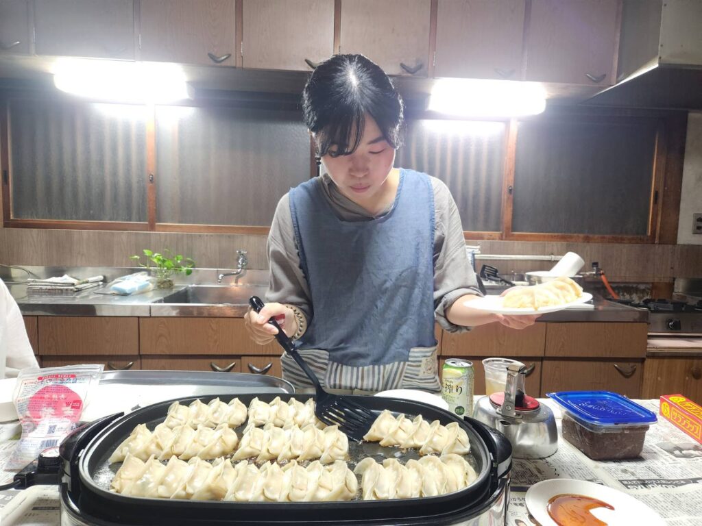 夜は「まちライブラリーMOYA」をお借りして餃子パーティー。デザインスクール修了生の引間さんプロデュースで、大商金山牧場の餃子やちょうほうやの漬物、肉の山形やの惣菜を囲みながら、笑い声の絶えない温かな時間となりました。
