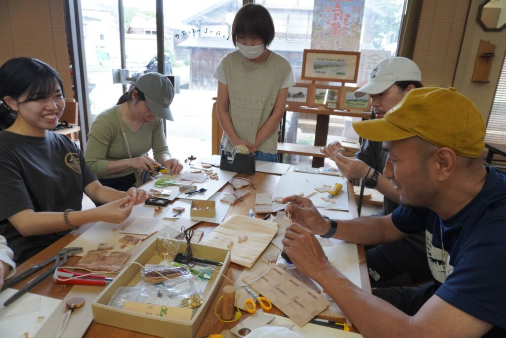 岸家具店では、金山杉の端材を使ったアクセサリー制作に挑戦。「大美輪の杉を実際に見た上で岸家具さんでワークショップ型でアクセサリーを作れたこと」が印象に残ったという声も。