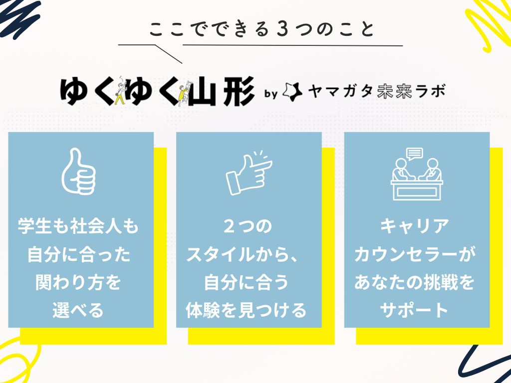 どちらもキャリアカウンセラーが監修・伴走し、山形で働くリアルを自分の目で確かめられる場です。
